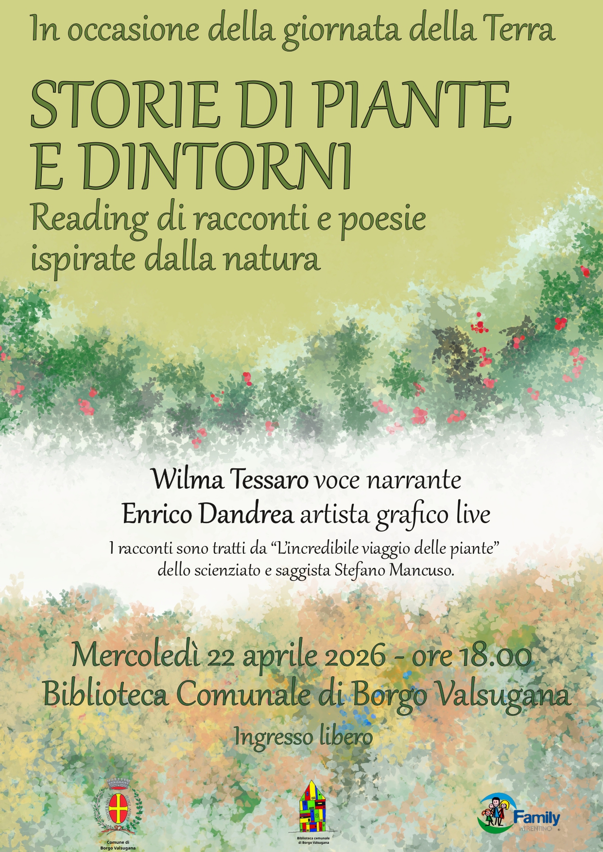 Mercoledìı 22 aprile appuntamento in Biblioteca alle ore 18.00 con Wilma Tessaro ed Enrico Dandrea con la lettura pubblica 𝐒𝐭𝐨𝐫𝐢𝐞 𝐝𝐢 𝐩𝐢𝐚𝐧𝐭𝐞 𝐞 𝐝𝐢𝐧𝐭𝐨𝐫𝐧𝐢.